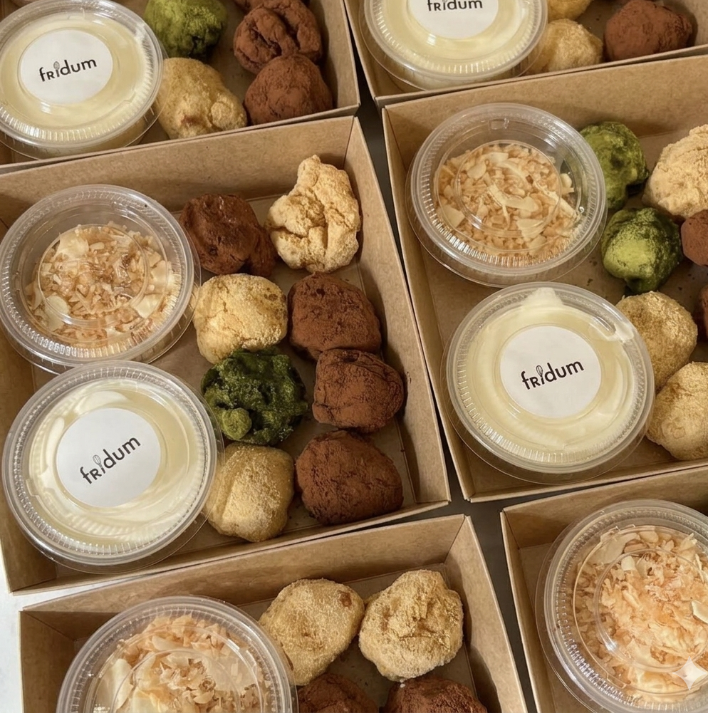 Dùng kèm kem whipping cream và vụn dừa nướng