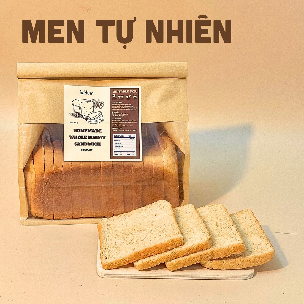 Nguyên liệu: Men tự nhiên ủ 20h giúp bánh mềm xé sợi, giàu dinh dưỡng, dễ tiêu hoá, đường huyết rất thấp dùng được cho người tiểu đường; bột mì 13, trứng gà, sữa tươi, bơ lạt TH, đường cát lu kết tinh tự nhiên Nghệ An, muối biển.