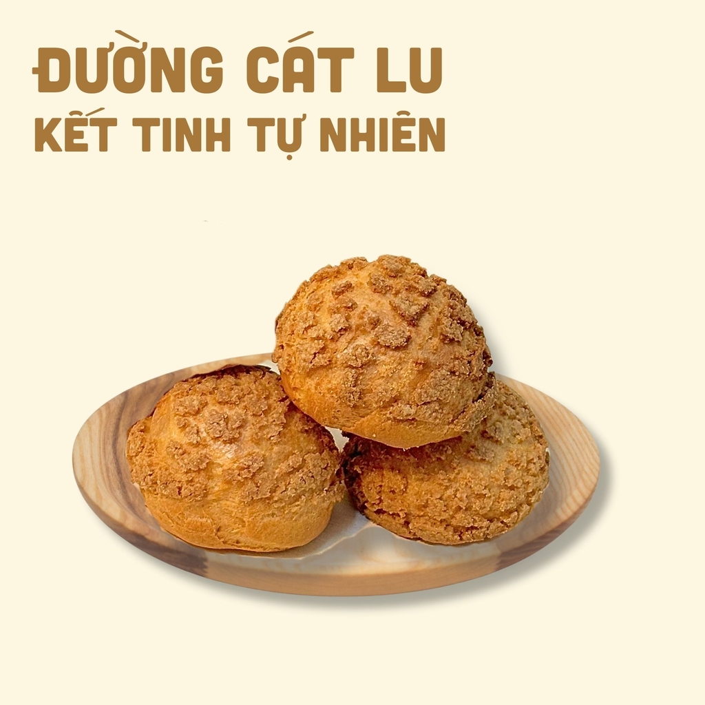 Nguyên liệu: Bột mì nguyên cám, bột mì đa dụng, bơ TH, trứng, sữa, kem sữa tươi, đường cát lu kết tinh tự nhiên Nghệ An, vani.